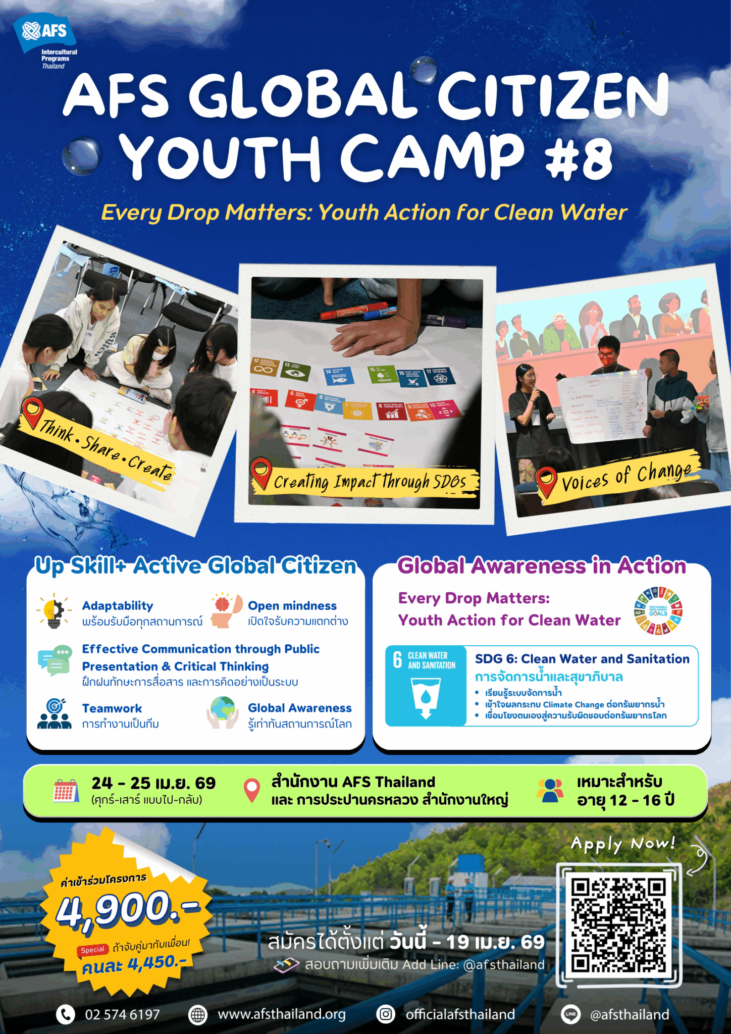 ในแต่ละปี มูลนิธิเอเอฟเอส ประเทศไทย ได้พยายามรณรงค์จัดหาทุนเพื่อจัดสรรให้กับผู้เข้าร่วมโครงการ เพื่อสนับสนุนและกระจายโอกาสให้เยาวชนที่สนใจใฝ่รู้ และมีคุณสมบัติครบถ้วนได้พัฒนาตนเองอย่างเท่าเทียมกัน โดยแบ่งทุนการศึกษาเป็นหลายประเภท แต่ละประเภทมีลักษณะทุน ระดับความช่วยเหลือ และคุณสมบัติของผู้มีสิทธิ์ขอรับทุนที่แตกต่างกัน ดังนั้น จึงขอให้เยาวชนและผู้ปกครองศึกษารายละเอียดให้เข้าใจอย่างถ่องแท้ก่อนตัดสินใจสมัครขอรับทุนนั้นๆ เพราะเมื่อสมัครแล้วไม่อาจขอเปลี่ยนประเภทของการสมัครได้ และจะเรียกร้องสิทธิ์ใดๆในภายหลังมิได้