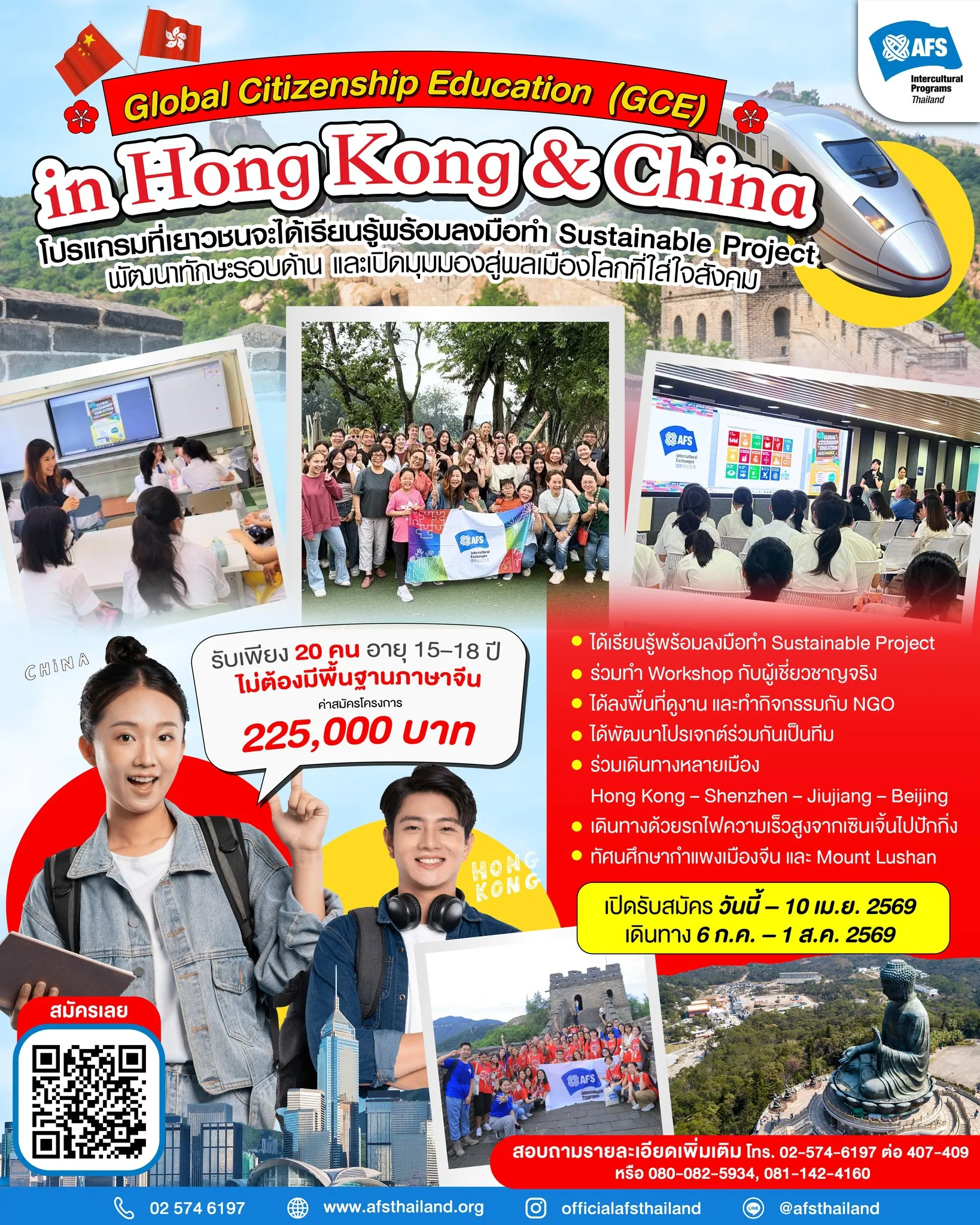 เพื่อเป็นทุนการศึกษาสำหรับนักเรียนที่มีความสามารถด้านการศึกษาแต่ขาดแคลนทุนทรัพย์ สำหรับการเป็นนักเรียนแลกเปลี่ยนที่ต่างประเทศ ภายใต้โครงการของเอเอฟเอส ประเทศไทย เนื่องในโอกาสครบรอบ 65 ปี มอบทุนการศึกษา 65 ทุน ในปีพ.ศ. 2570 และเพื่อสร้างความสัมพันธ์อันดีระหว่างเอเอฟเอส ประเทศไทย และผู้ที่เกี่ยวข้อง