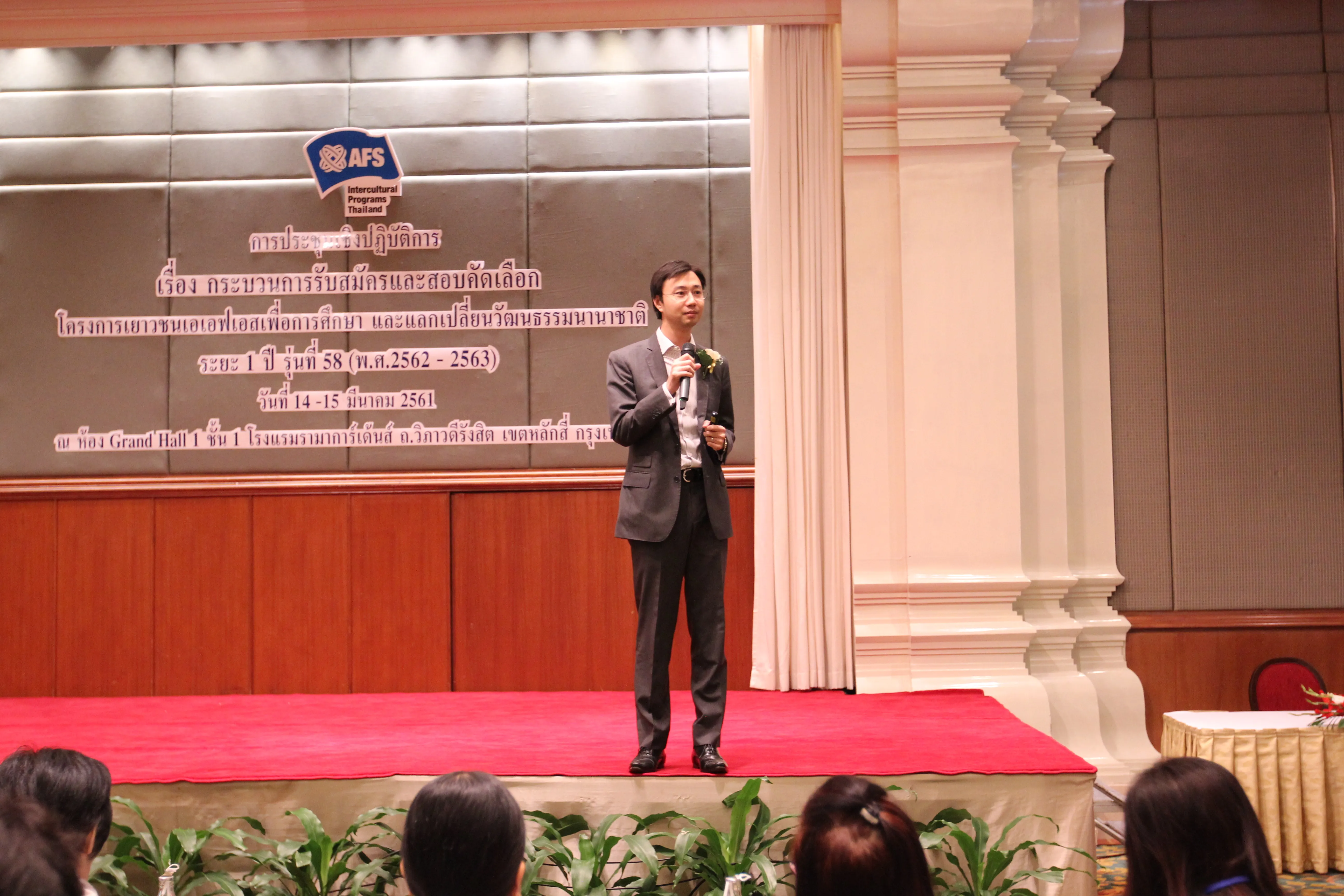 การประชุมเชิงปฏิบัติการ เรื่อง กระบวนการรับสมัครและสอบคัดเลือกโครงการเยาวชนเอเอฟเอสเพื่อการศึกษา และแลกเปลี่ยนวัฒนธรรมนานาชาติ ระยะ 1 ปี รุ่นที่ 58 (พ.ศ.2562-2563) ระหว่างวันพุธที่ 14 ถึงวันพฤหัสบดีที่ 15 มีนาคม 2561 ณ ห้อง Grand Hall 1 ชั้น 1 โรงแรมรามาการ์เดนส์ ถ.วิภาวดีรังสิต เขตหลักสี่ กรุงเทพฯ โดยมีคุณสนั่น อังอุบลกุล ประธานกรรมการมูลนิธิ เป็นประธานในการเปิดงานครั้งนี้ และมีอาสาสมัครเอเอฟเอสจากทั่วประเทศเข้าร่วมประชุม