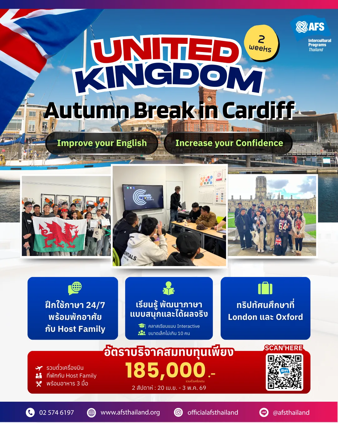 โอกาสเรียนรู้ พัฒนาภาษาแบบสนุกและได้ผลจริง ณ สหราชอาณาจักร ผ่านคลาสเรียนแบบ Interactive ที่สถาบันสอนภาษาที่ได้รับรองจาก British Council และ English UK พร้อมทริปทัศนศึกษาที่ London และ Oxford ตลอดระยะเวลา 2 สัปดาห์